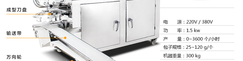 290III卷面式包子機(jī),可生產(chǎn)各種不同餡料的包子、各式包餡食品,如豆沙包、南瓜餅、肉包、小籠包、水晶包等幾十種包餡制品。適用于個(gè)體戶、食品廠、學(xué)校等單位食堂??蓾M足不同客戶群體。免費(fèi)提供工藝技術(shù)。
