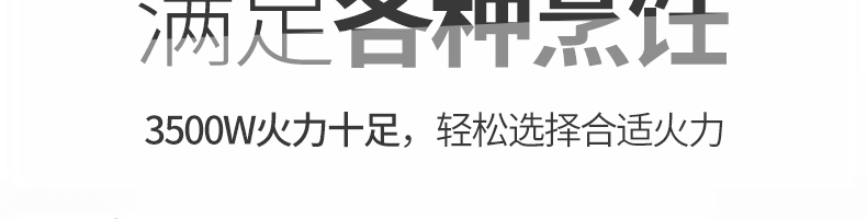 四頭柜式電磁爐,10檔調(diào)節(jié),滿足各種烹飪。3500W火力十足,輕松選擇合適火力。同時(shí)工作互不干擾單獨(dú)磁爐控制面板,設(shè)置不同大小檔數(shù),同時(shí)工作,互不干擾。