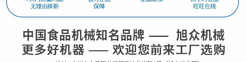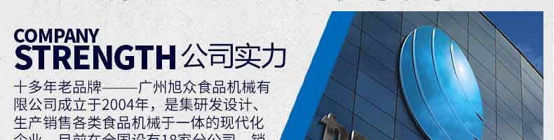 廣州旭眾食品機(jī)械有限公司是一家集科研開發(fā),生產(chǎn)設(shè)計(jì),營銷服務(wù)為一體的現(xiàn)代化生產(chǎn)企業(yè)。現(xiàn)代化生產(chǎn)車間,精湛制造技術(shù),所產(chǎn)機(jī)械歷經(jīng)市場重重考驗(yàn),不斷贏得海內(nèi)外客戶的贊譽(yù)。