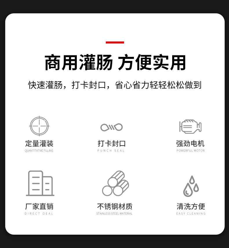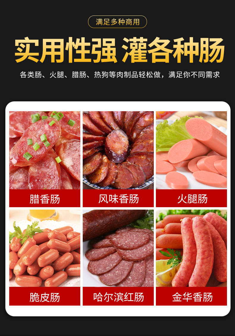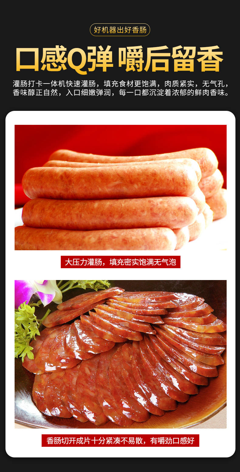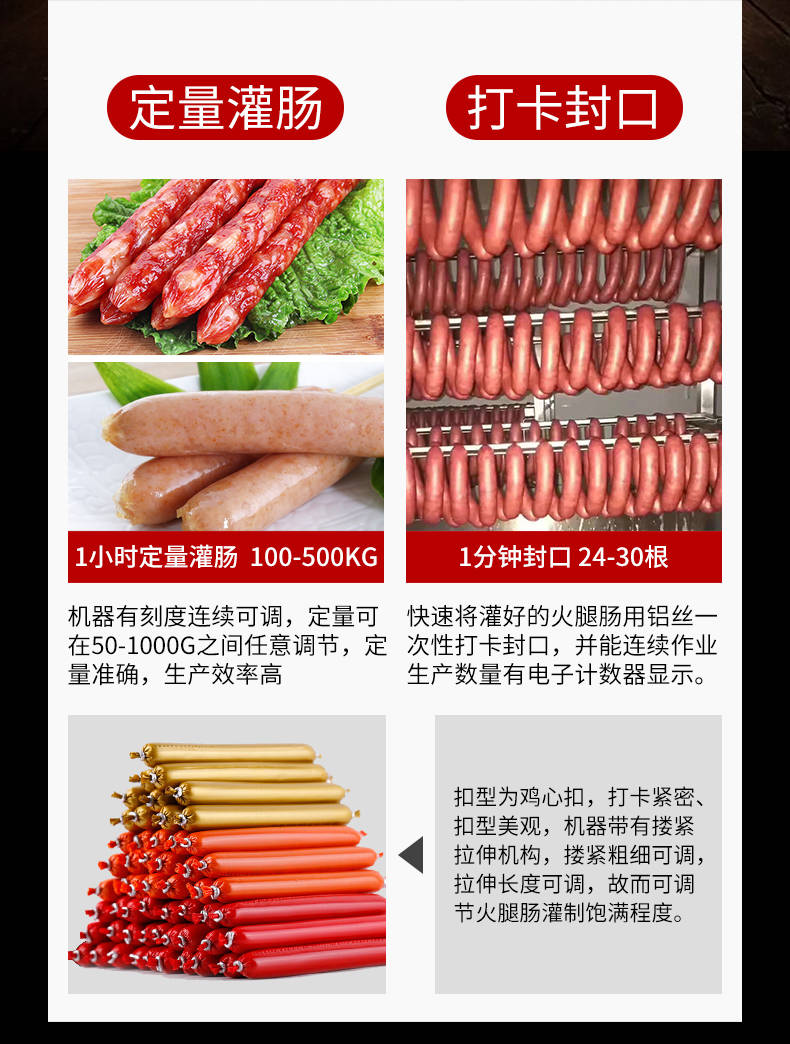 XZ-I型自動定量灌腸機,使用優(yōu)質不銹鋼制造,符合食品機械的要求,只需1人操作,特別適合中小型肉食加工廠使用,以各種畜禽類肉糜為原料的香腸、火腿腸、熱狗等天然腸衣、蛋白腸衣、煙熏腸衣等制品,可以灌制定重量單腸,也可連續(xù)灌制長腸。