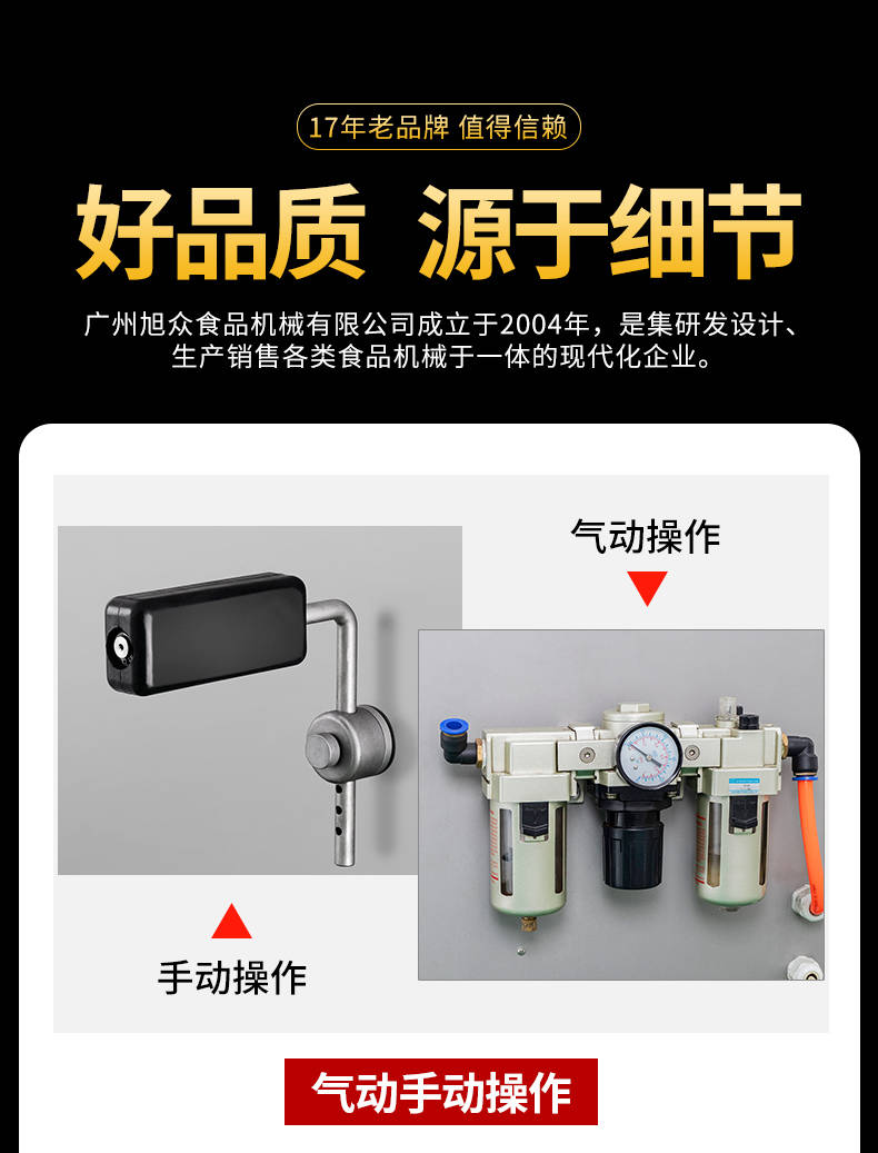 廣州旭眾食品機械有限公司是一家集科研開發(fā),生產設計,營銷服務為一體的現代化生產企業(yè)。現代化生產車間,精湛制造技術,所產機械歷經市場重重考驗,不斷贏得海內外客戶的贊譽。