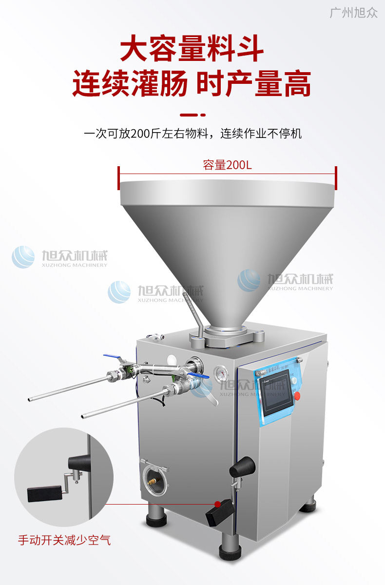 XZ-ZKG2800真空灌腸機,真空葉片灌裝機連續(xù)作業(yè)加料后不需停機,可灌肉粒&肉糜實用性強灌各種腸可做烤腸、親親腸、廣式臘腸、火鍋腸等連續(xù)灌制長腸。