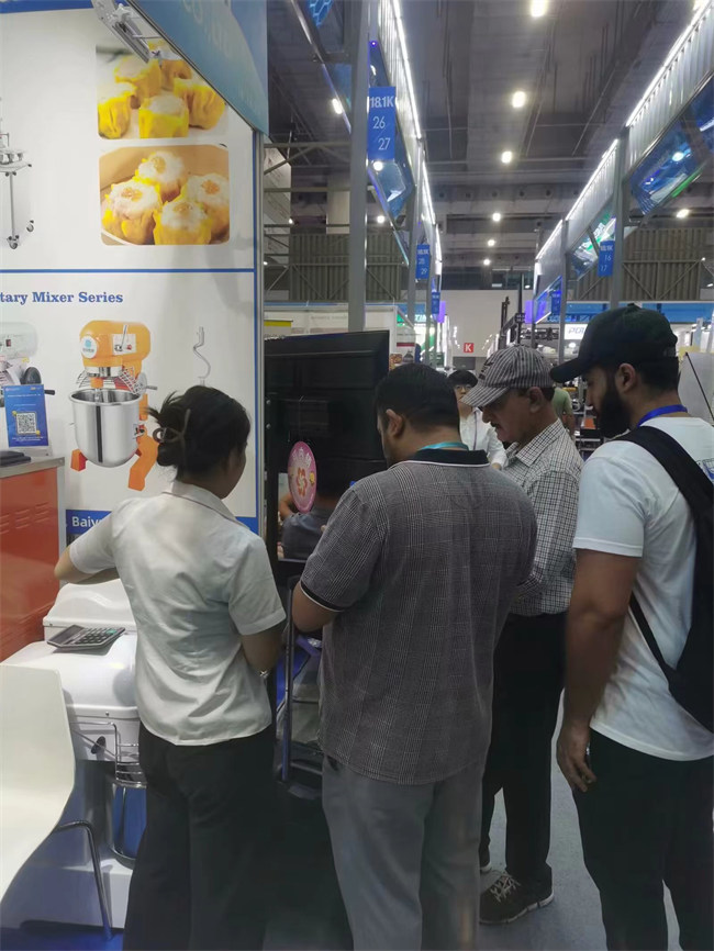 展臺(tái)上整齊地?cái)[放著各種食品加工機(jī)械,從冰激凌機(jī)包子機(jī)、和面機(jī)、攪拌機(jī)等,每一樣產(chǎn)品都展示著公司的技術(shù)實(shí)力和創(chuàng)新能力。